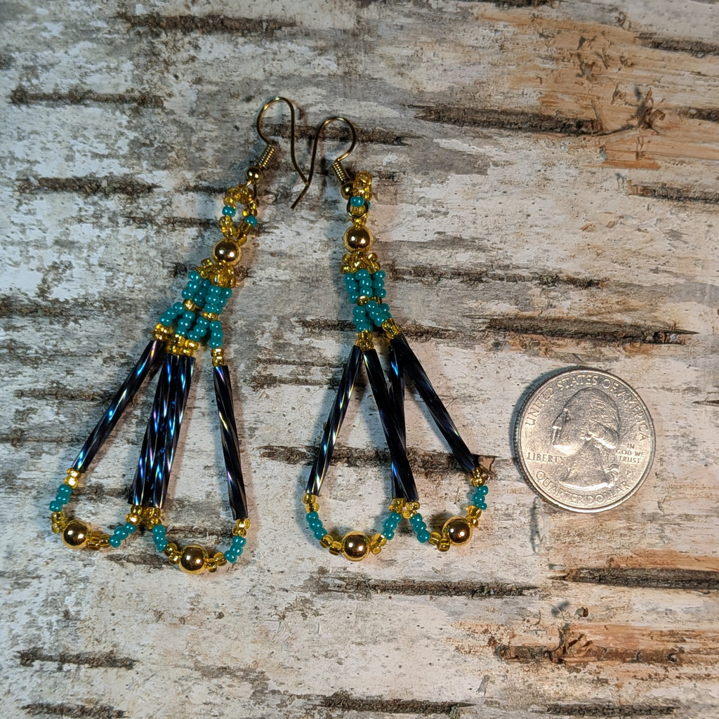 Beaded Long Bugle Twist Dangle Earrings