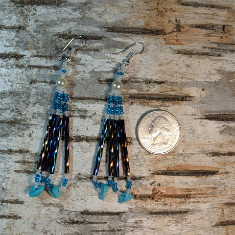 Faux Pearl & Turquoise Beaded Bugle Dangle Earrings